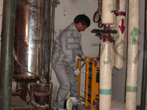 供热间供系统中的换热设备板式换热器在运行中,板片容易结垢影响换热效果,对几种常见的板换清洗方式说明举例,分别将清洗效果进行对比,分析利弊。提出应用板换在线清洗机解决板换清洗的问题,并详细阐述了应用原理、操作流程、药液配比和使用效果,形成了一套板换清洗的应用方案。